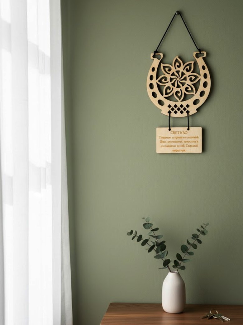 Eco-friendly wooden welcome sign symbolizing positivity, courage, and protection.