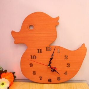 Eco-friendly natural wooden duck-shaped desk clock that adds a playful and sustainable touch to any space.